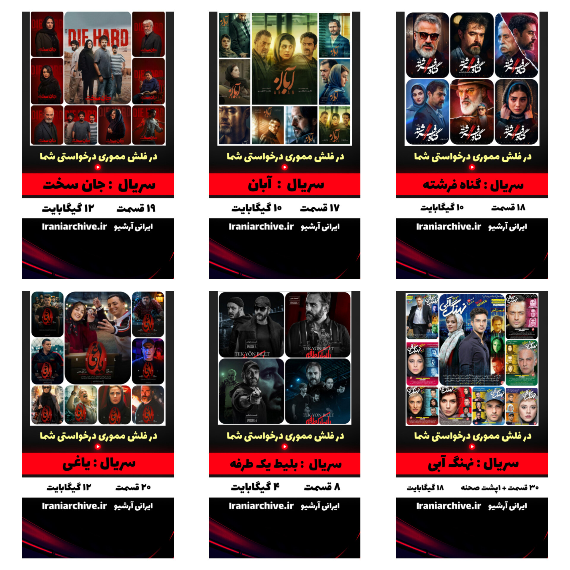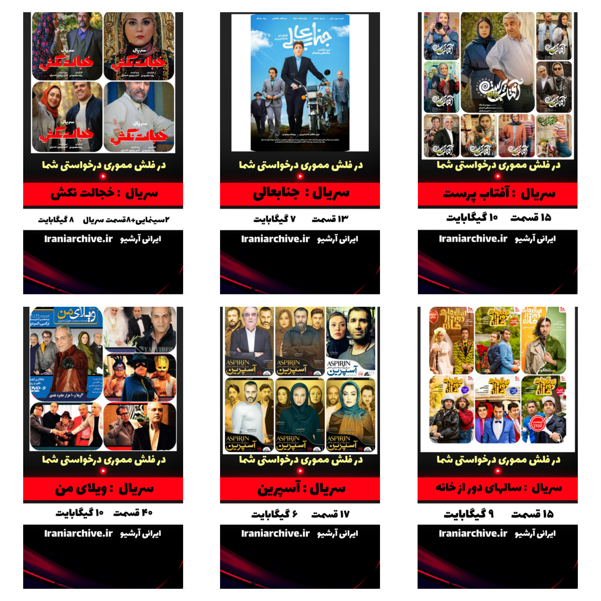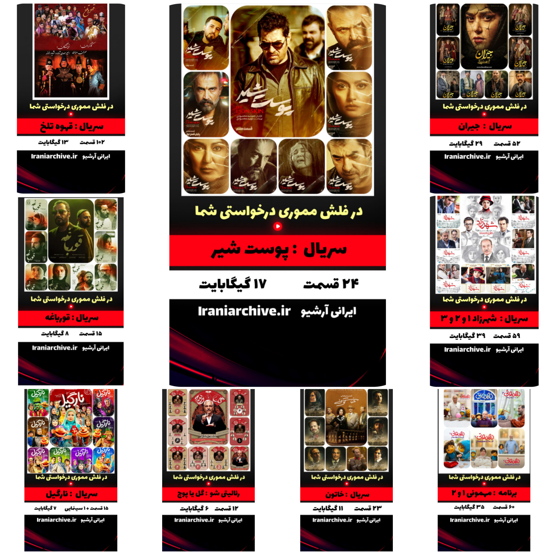 شما میتوانید در سفارش خودتون چندین فیلم ایرانی قدیمی ( قیصر ٫ طوقی ٫ صمد و ... ) + چندین فیلم ایرانی جدید ( ابد و یک روز ٫ جدایی نادر از سیمین ٫ مارمولک و ... ) و چند سریال نمایش خانگی ( پوست شیر ٫ قورباغه و قهوه تلخ و .... ) و چند سریال تلویزیونی ( پایتخت ٫ شب های برره ومتهم گریخت و .... ) را همزمان داشته باشید .
