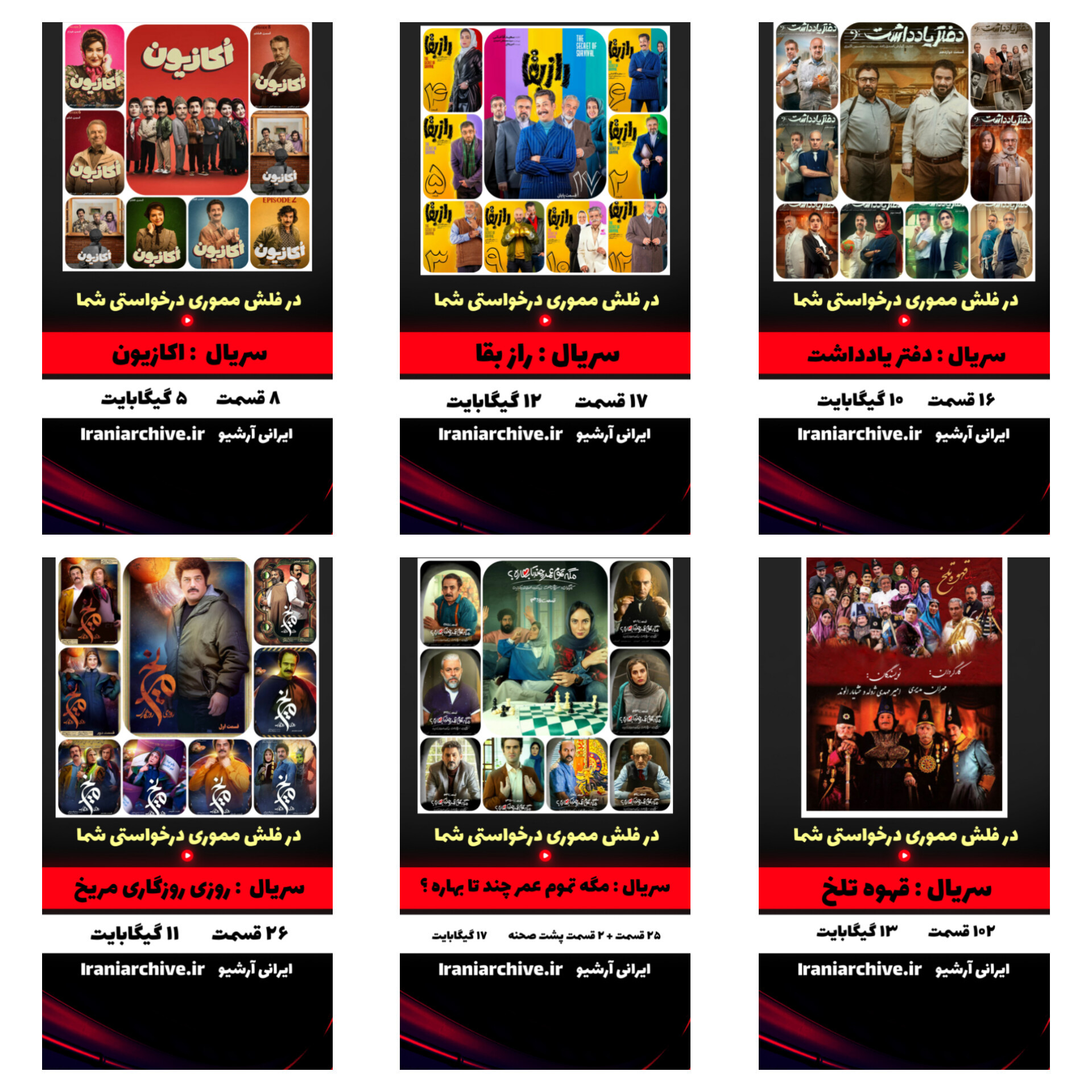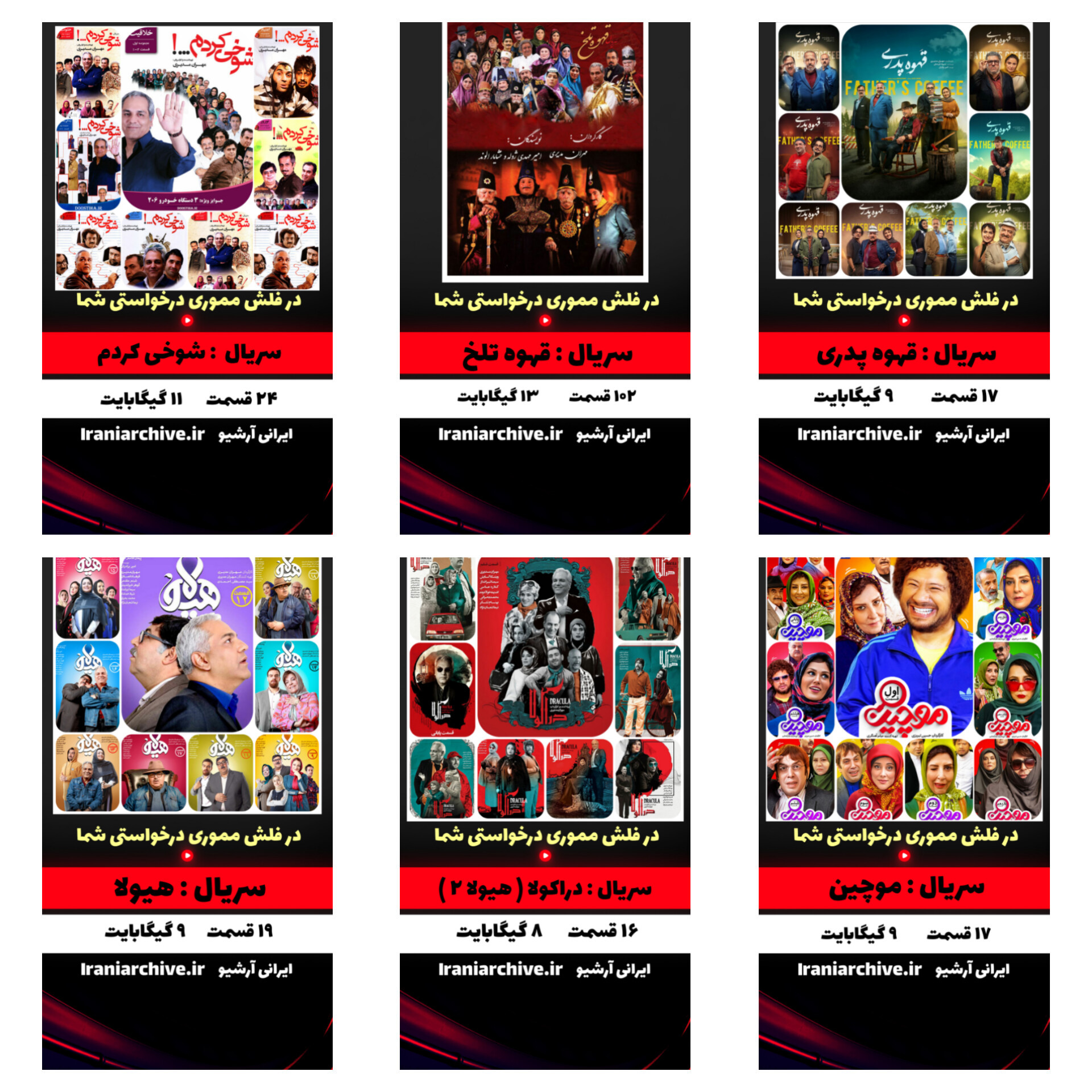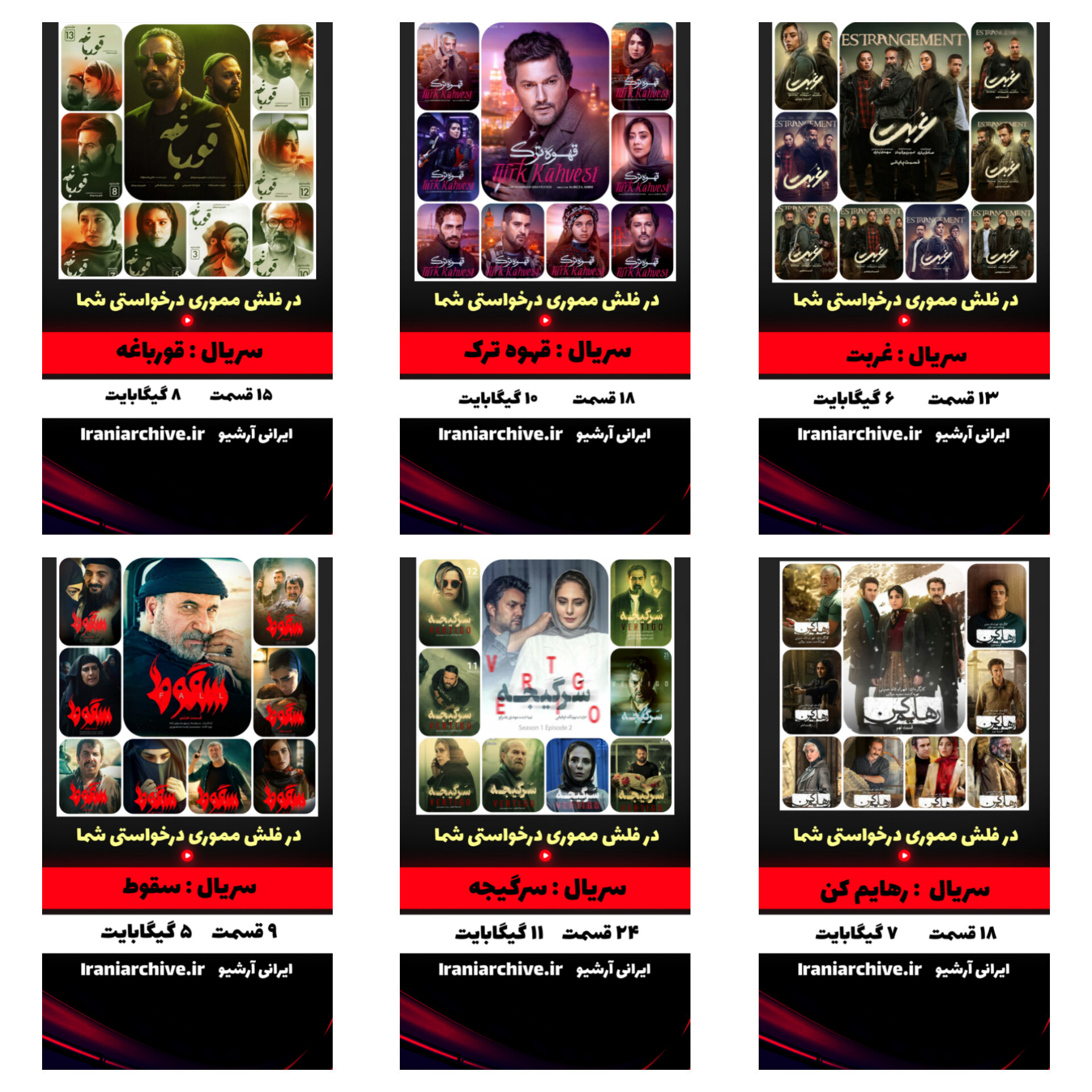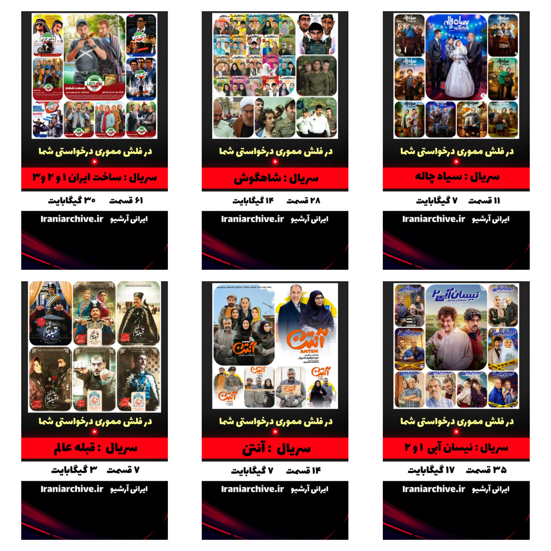 شما میتوانید در سفارش خودتون چندین فیلم ایرانی قدیمی ( قیصر ٫ طوقی ٫ صمد و ... ) + چندین فیلم ایرانی جدید ( ابد و یک روز ٫ جدایی نادر از سیمین ٫ مارمولک و ... ) و چند سریال نمایش خانگی ( پوست شیر ٫ قورباغه و قهوه تلخ و .... ) و چند سریال تلویزیونی ( پایتخت ٫ شب های برره ومتهم گریخت و .... ) را همزمان داشته باشید .